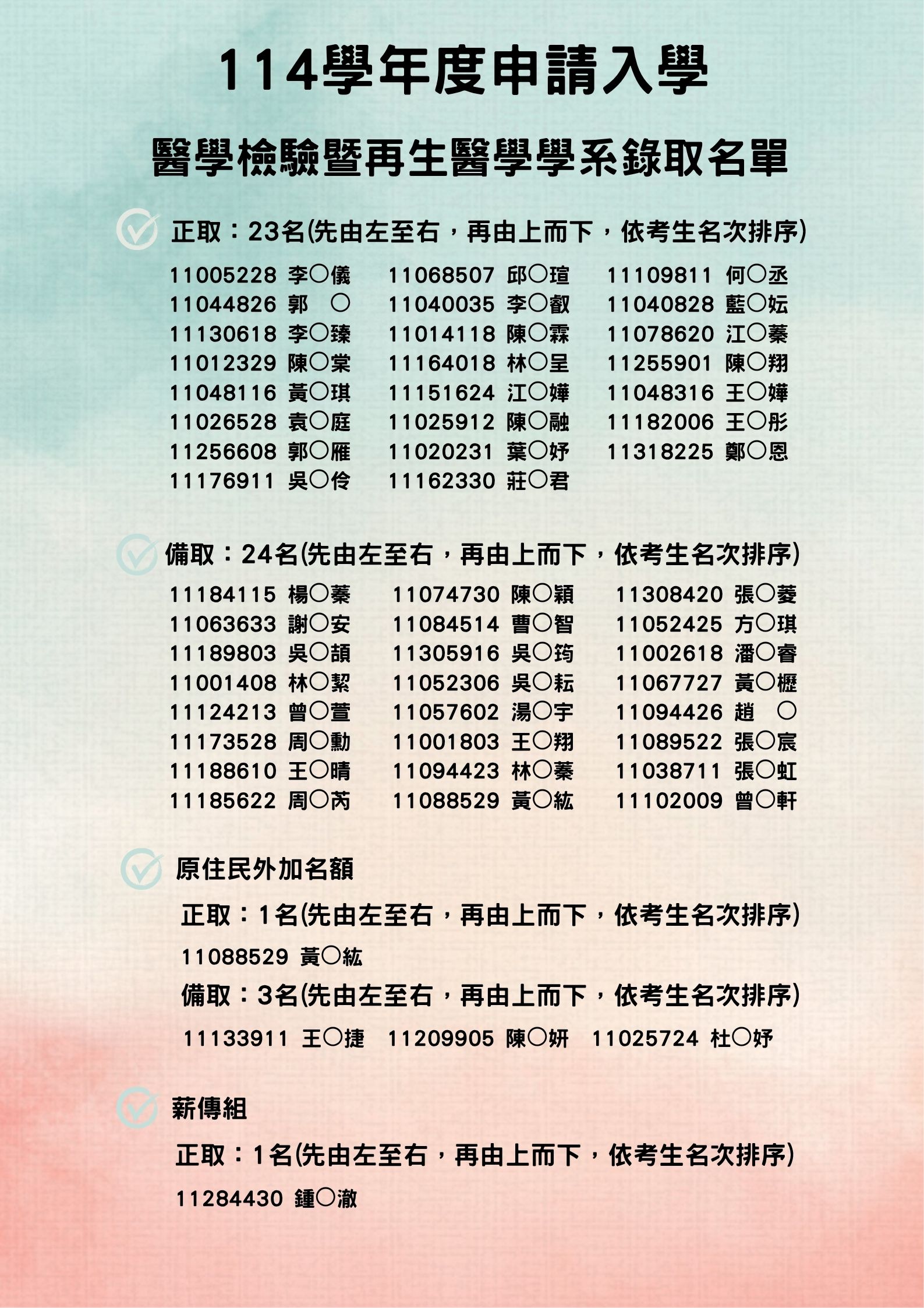 (錄取名單若有錯誤,以正式公告錄取名單為準)